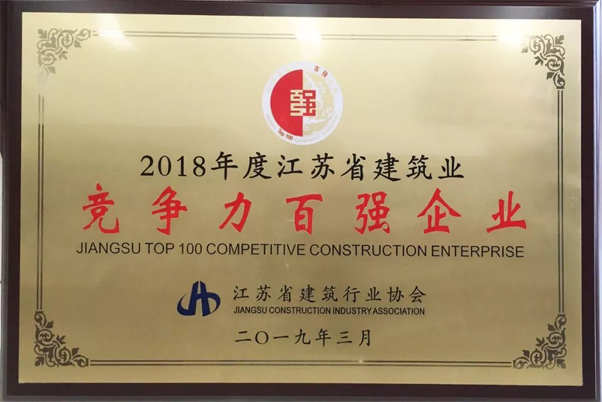 集團已連續多年獲“江蘇省建筑業(yè)競爭力百強企業(yè)”榮譽(yù)稱(chēng)號,本次經(jīng)評審委員會(huì )初審、統計、公示、核審,在2018年度江蘇省建筑業(yè)“雙百強”企業(yè)評價(jià)排名第十五。集團總裁沈衛東榮獲“江蘇省建筑業(yè)優(yōu)秀企業(yè)家”稱(chēng)號。